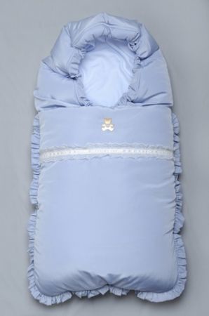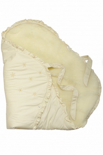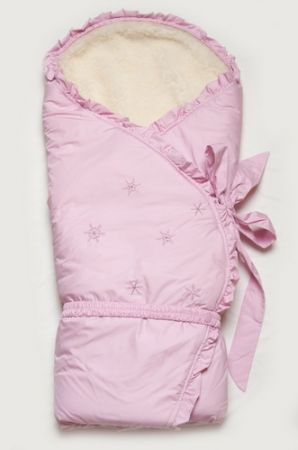 Он украшен снежинками, что придает изысканность и торжественный вид.Его можно использовать как на выписку с роддома, а также для прогулок с коляской на свежем воздухе в зимний период.