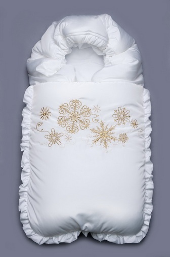Модный карапуз Конверт на выписку зимний белый Снежинки