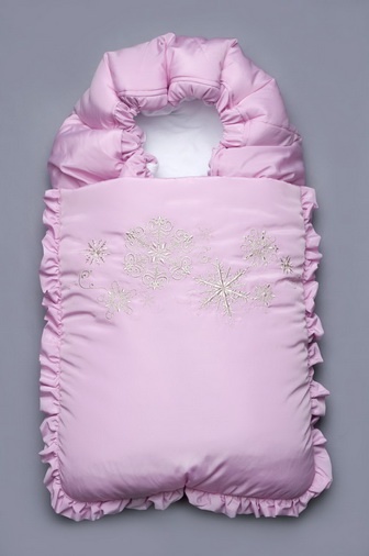 Модный карапуз Конверт на выписку зимний розовый Снежинки