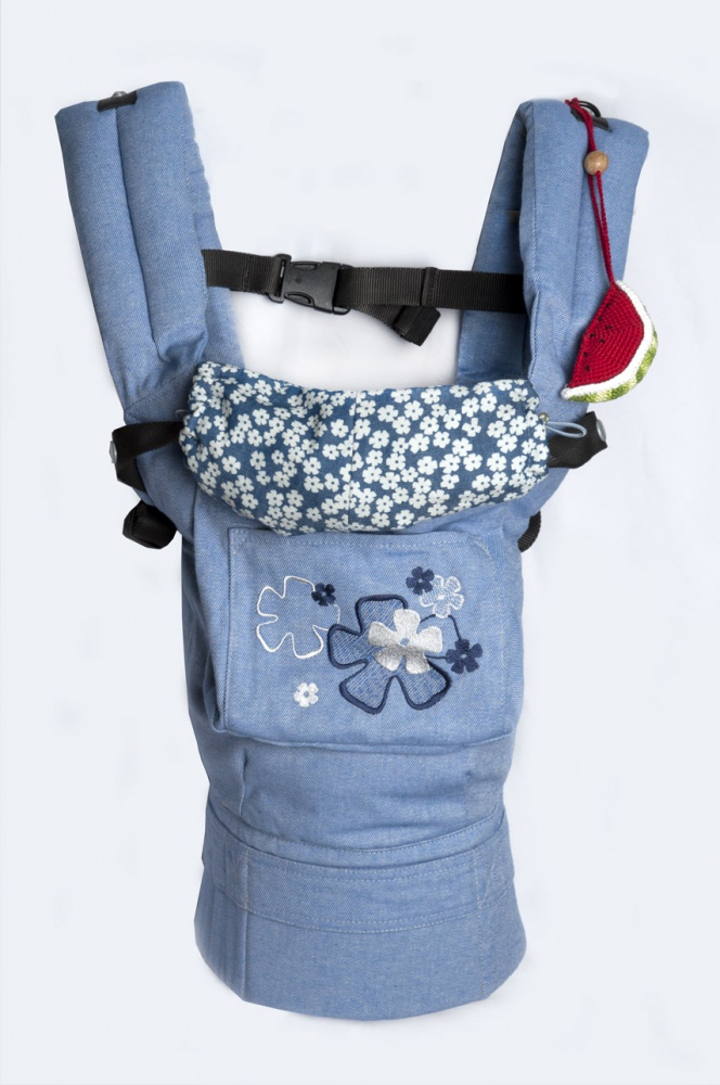 Модный карапуз Эргономичный рюкзак My baby голубой джинс (цветочки)