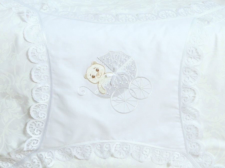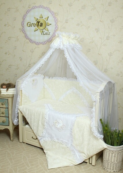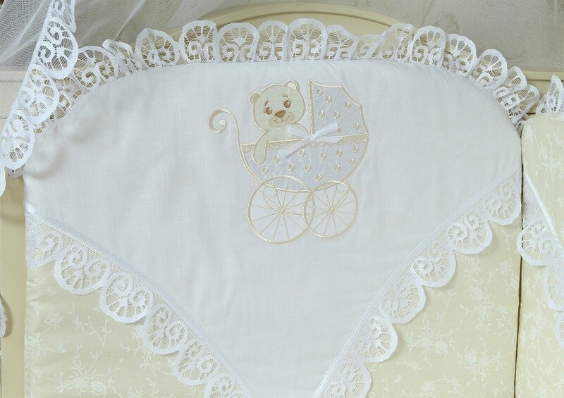 Комплект с оригинальной вышивкой, поднимет настроение и заинтересует ребенка, он с удовольствием будет рассматривать аппликацию, которая притягивает спокойными и четкими деталями.Детское постельное белье полностью пошито из высококачественного экологически-чистого хлопка. Это нежный, очень мягкий и приятный на ощупь материал. Он хорошо пропускает воздух, впитывает лишнюю влагу и не вызывает аллергических реакций. Комплект постельного белья для новорожденных "Непоседа" 7 предметов:Пододеяльник: Читать полностью