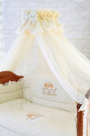 Это элитный комплект в кроватку, который изготовлен исключительно из высококачественного экологически-чистого хлопка. Который полностью отвечает всем требованиям норм экологического контроля, что подтверждаются сертификатами.Оригинальный комплект в детскую кроватку – поможет создать в детской комнате атмосферу сказки. Благодаря нежному цвету, кружеву и декоративной вышивке, которая включает в себя все самые необходимые детали для крепкого и безопасного сна Вашего ребенка.Комплект GreTa Lux "Ангел" Читать полностью