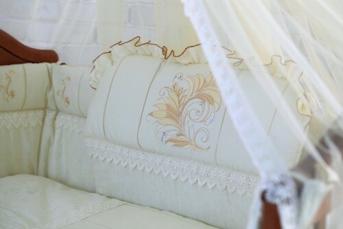 Комплект в кроватку Прованс - это элитное детское постельное белье, которое выполнено из качественно натурального хлопка. Ведь хлопок отлично пропускает воздух, поглощает влагу и совершенно не вреден для здоровья.А нежный цвет с итальянским кружевом и пышными оборками будет преображать спальное место ребенка. Благодаря спокойной расцветке комплекта, Ваш малыш с удовольствием  будет засыпать и видеть хорошие сны.Комплект "Прованс" 7 предметовВ комплекте: - балдахин – 6м- защита (4 части) Читать полностью