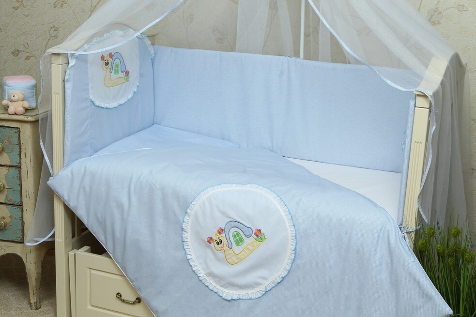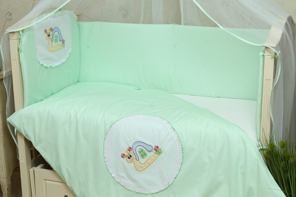 Комплект в кроватку Улитка с оригинальной расцветкой и рисунком милой улитки, поднимет настроение и заинтересуют ребенка, он с удовольствием будет рассматривать аппликации, которые притягивают спокойными и четкими деталями.Кроватка Вашего ребенка будет неотразимой и очень уютной. Пусть малыш засыпает и просыпается с удовольствием.Изготовлен комплект из качественного экологически-чистого хлопка, который очень мягкий и приятный на ощупь материал. Он хорошо пропускает воздух, впитывает лишнюю Читать полностью