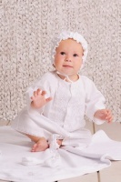 Набор крестильный рубашка для мальчика изготовлен с натурального высококачественного батиста и льняного кружева. Состоит набор из рубашки, шапочки, пинеток.Рубаха - очень удобна, спереди застегивается пуговицами, которую вдоль украшает широкое, оригинальное льняное кружево.Шапочка - фиксируется на голове ребенка при помощи завязки и дополнительно потайной резиночки которая стягивается.Пинетки - маленькие аккуратные льняные с кружевными носочками будут очень мило выглядывать из-под рубахи.В Читать полностью
