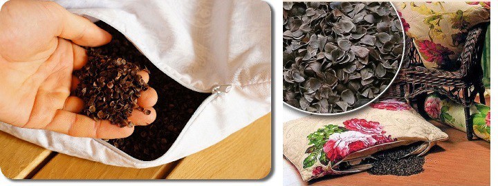 Эти и другие свойства гречневой лузги делают ее идеальным наполнителем как для взрослых, так и детских подушек.