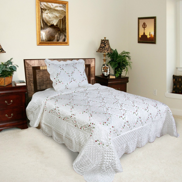 Стеганое покрывало Романтика станет чудесным дополнением и украшением вашей комнаты. А благодаря своему составу, покрывало прослужит вам долго. Цвета в ассортименте.