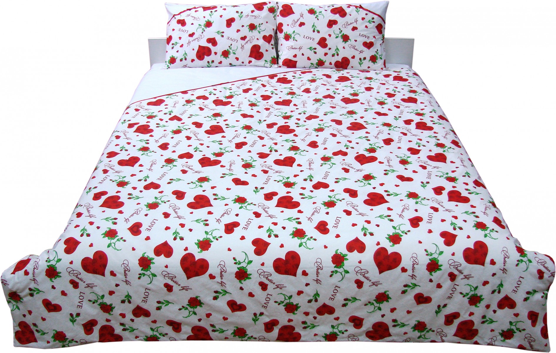 Постельное белье с сердечками и розочками создаст в комнате атмосферу романтики и гармонии. Комплект приятный на ощупь, выполнен из качественного натурального материала.